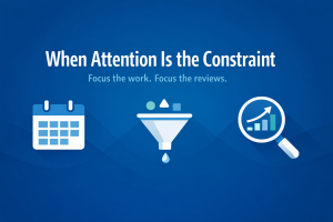 Most things go wrong because leaders are spread too thin, not because the work is impossible. When the volume of initiatives outstrips reviewer capacity, important items get little or no attention. Meetings slip. Mental presence drops. The fix is to match what we take on to the attention we can invest, and to raise the … Continue reading When Attention Is the Constraint, Focus the Work and the Reviews